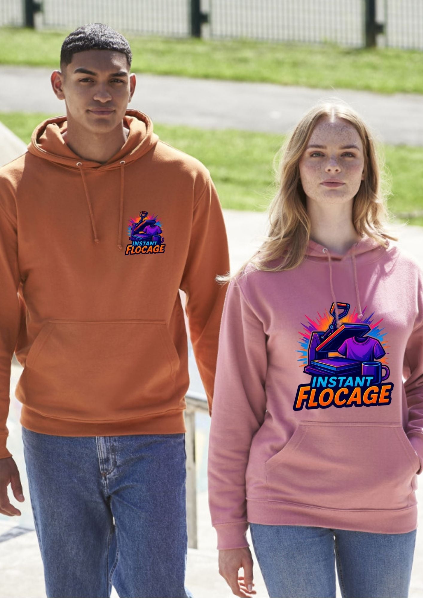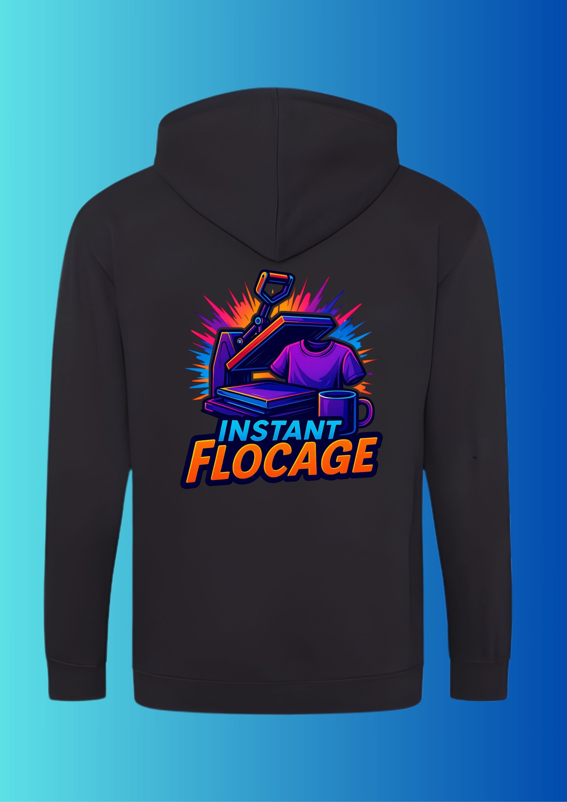 Capuche doublée. Poche kangourou. Double coutures. Cordons ton sur ton. Poignets et ourlet en bords côte. Étiquette détachable.